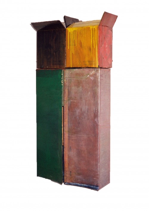 Machteld Rullens, Box (Kusama), 2020, cardboard, pigments, oil paint, resin, 62 x 19 x 16 cm