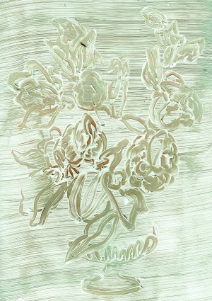 Halfway between painting and digital image making, Amsterdam based Jean-Baptiste Maitre (FR) explores new methods for figurative representation. Images of still lifes and horror scenes inspired by Dutch paintings as well as 1980s horror movies are translated into technically ambiguous paintings. First, a thick white layer of acrylic paint is applied onto resin-coated paper. The paint is then quickly manipulated with fast brushstrokes to create the base of the painting. In the second phase, Maitre scans and digitally analyses the visual structure of the brushstrokes. Using image editing software, colors are carefully applied and printed onto the painting through inkjet. The result is a visually contrasted painting that combines a fast hand-painted image with digitally precise color printing.