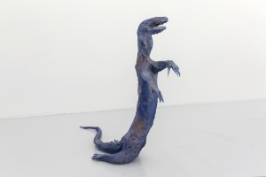 Here, the monitor lizard becomes the odd one out or perhaps the ghost, the point where figuration won from abstraction. Like zombies, the living dead settled in amongst the everyday, roaming trash bags and bins, it now roams the gallery space, disrupting taste and style.
