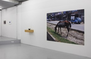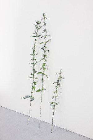Likewise, Edith Dekyndt places affect of material at the forefront of her practice, materials accumulate colour, dust, scars and breakages over time. Dekyndt’s work captures these echoes and passes them onwards. So too does Christine Moldrickx’s work emanate this aura, objects as vessels of emotional burdens, pasts and messages. These are but a few examples of the importance of sensing, by relating to an object from multiple angles, through multiple senses. Equally driven by place and material, the works of Ehsan ul Haq and Navid Nuur delve into humorous, experiential and semiotic questions. Their playfulness provides levity whilst simultaneously frustrating the mind: how do we relate to living and non-living beings? Altogether the works presented seek to induce a quake of the senses, in the folds of the fingerprints, retina, sinuses and taste buds. Thus, allowing for a deep inhalation into the nervous system that has so long sat in static geometries staring into square planes and sunk in a glassy data gel, now free to exist in space.