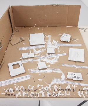 Een ander aspect dat Michiel Ceulers als wereldlijk bewust mens en schilder typeert is zijn mentaliteit en levenshouding in het atelier. Ik ken Michiel al lang, en vermits hij de neiging heeft om nog al regelmatig van studioruimte te wisselen, heb ik dan ook al een (heel) aantal ateliers van hem bezocht. Daarbij is het op zijn minst treffend, om niet te zeggen confronterend, te merken dat er bij hem quasi geen enkel onderscheid te maken valt tussen zijn leef- en zijn werkruimte. Meer nog, het lijkt wel of zijn atelierpraktijk letterlijk lijkt te parasiteren op zijn dagelijkse leefomgeving. Ceulers gedraagt zich in productieve periodes als een obsessieve jager-verzamelaar, waarbij hij bijna als een rat onophoudelijk divers op straat gevonden parafernalia, rommel en trash zijn ‘nest’ binnensleept als inspiratie- en werkmateriaal voor zijn schilderijen, in zulke grote proporties dat er algauw bijna geen sprake meer is van een leefruimte tout court. Ik heb dat altijd niet enkel zeer fascinerend, maar ook zeer geëngageerd gevonden van Michiel Ceulers: niet enkel laat hij haalt hij door middel van het verzamelen van al zulke ‘street-trash’ letterlijk de dagelijkse werkelijkheid binnen in zijn leefomgeving, hij laat het zelfs toe om zichzelf hiermee letterlijk te laten overspoelen, waardoor hij bijna genoopt wordt om zijn leven letterlijk ‘aan te passen’ aan die chaotische werkelijkheid.