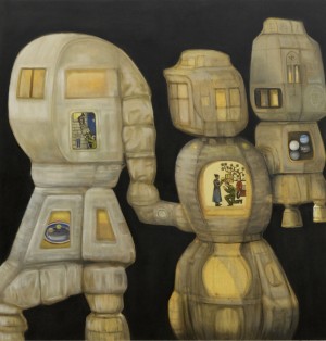 They look upon scenes (within the sculptures) which are observations of our society — as it is today, how it once was, often permitting a connection between the two.